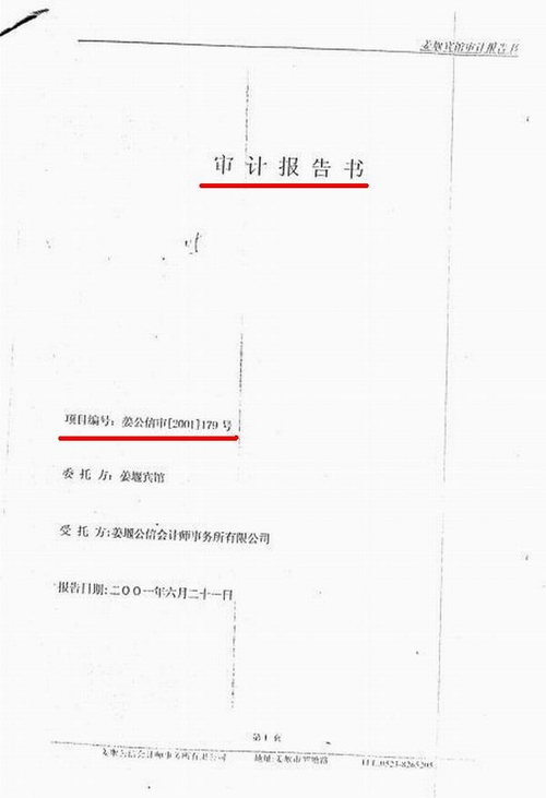 原政府招待所于2000年12月4日进行了整体资产评估,截止2000年9月30日创造的总资产为6928.96万元。负债4267.62万元,净资产为2661.33万元(见附件)。而法院民事裁定书上(见附件)截止2001年4月30资产总计2787.14万元,负债4340.59万元。从评估和法院裁定的时间间隔来年,短短七个月的时间,我们的总资产就流失4141.62万元?这显然不是事实,其中必有猫腻,用非法的评估,让“资不抵债”成为事实,难道这就是阳光政府的“阴谋”?